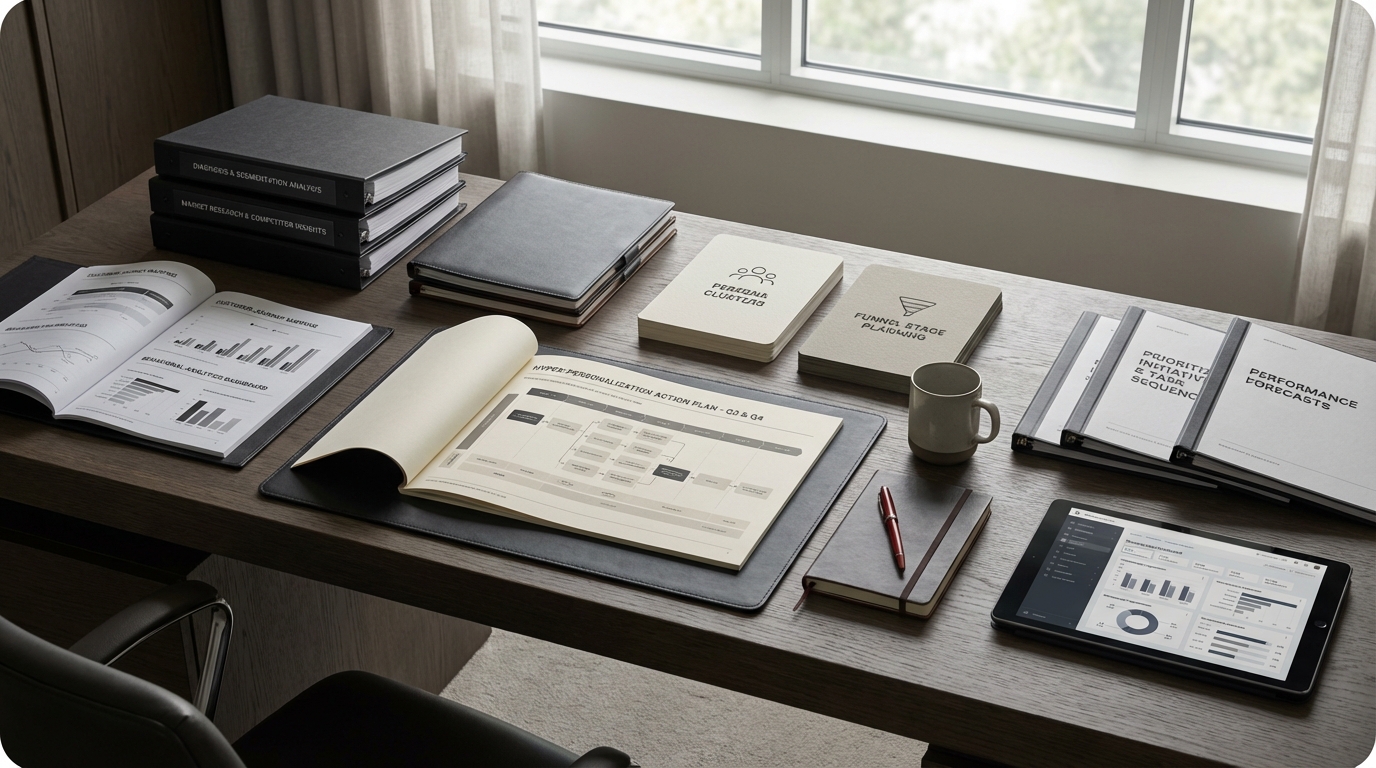 Diagnóstico, definição de personas e planejamento de funil para organizar prioridades, canais e mensagens. Assim, cada ação de marketing tem função clara: atrair, converter ou reter.